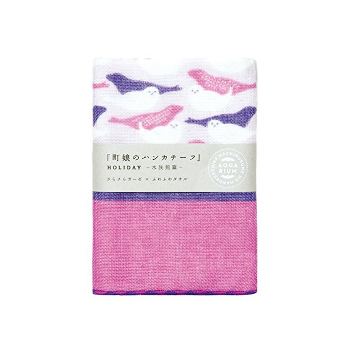 Miyamoto-Towel 미야모토 거즈 타올 정딸(아가씨)의 handkerchief HOLIDAY 수족관편 바다표범(아자라시) 25×25cm