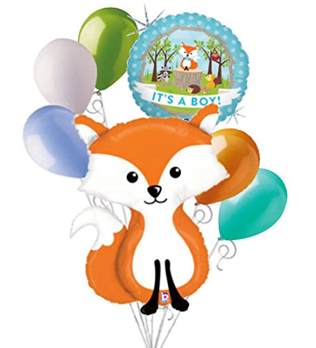 -. Feature : 1 - 36" Woodland Fox Shape Balloon / 1 - 18" "It's a Boy!" Woodland Creatures Round Balloon / 5 - 12" Mixed Latex Balloons (Lime Green, White, Light Blue, Orange, Aqua) / Packaged & Shipped together / Helium and Ribbons are not included