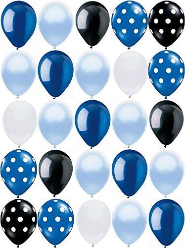 -. Feature : - Material: Latex / - Size Approx. : 11" / - Quantity: 25 pcs / - color : MIX Blue, Black & White / - US STOCK FAST SHIPPING
