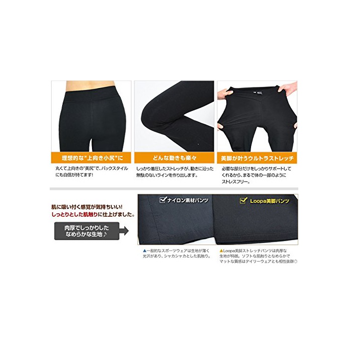 원본상품명: ヨガウェア パンツ【Loopa】美脚ストレッチパンツ 滑らか 伸びる ストレッチ 美脚果【日本正規品】ロング クロップド丈(L)ブラック