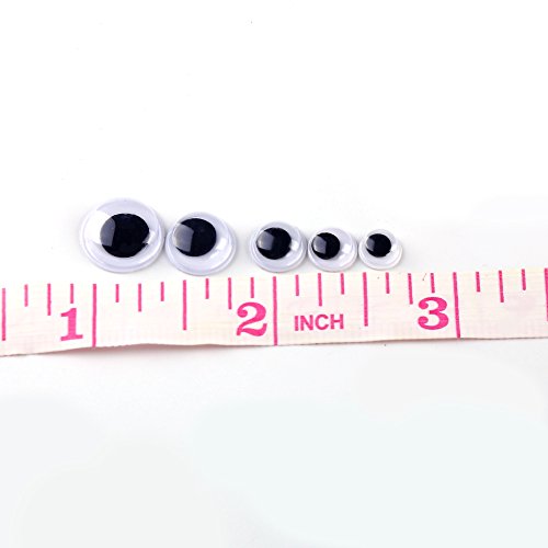 - A bag contains 500 pcs wiggle eyes in 5 different sizes--6mm, 7mm, 8mm,10mm and 12mm.