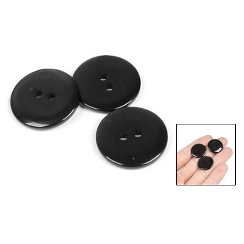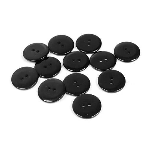 Rounded Plastic 2 Holes Sewing Clothing Buttons Black 12 Pcs