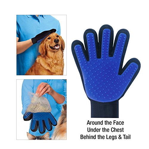 Keeping your dog's or cat's coat brushed regularly is important for their overall health, as well as yours. Brush Away the Mess This flexible, slip-on grooming gloves allow you to brush away dirt, grime, dander and loose hair from cats and dogs of all shapes and sizes. More importantly, it helps stimulate the healthy oils on their skin which can improve the softness and radiance of their coat. A Healthier Home Gentle on the skin thanks to soft bristle tips, our groomer's glove not only helps reduce the amount of hair left behind on furniture, clothes or in the car; it can help reduce allergens in the air for cleaner, healthier breathing. Product Details: Flexible Grooming Glove with Soft Bristles Adjustable Velcro Strap Lightweight and Breathable Gentle Hair Remover Machine Washable (Easy to Clean) Safe for Cats, Dogs and Other Pets 100% Satisfaction GuaranteeFeature