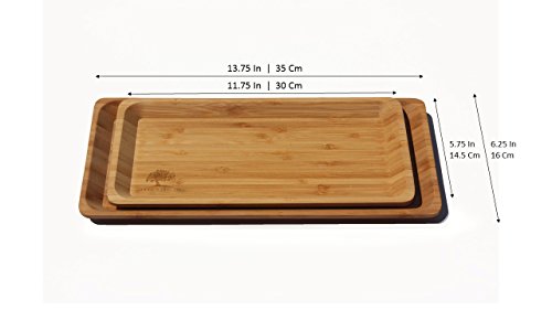 Johnny's Old Tree is proud to present to you our new product - a decorative wooden tray! Serving never had such style... Keep your conscience clean! The tray is made of 100% bamboo, which is a renewable, eco-friendly resource. So what can you do with this tray? Well, it has multiple uses: ? Serving food and appetizers ? Storing small valuable things like your wallet or your keys ? A decorative piece for your home Available in two sizes: ? Large - 13.75 X 6.25 X 0.8 Inches ? Small - 11.75 X 5.75 X 0.8 Inches. We recommend you to get both sizes for a perfect stackable set. Don't hesitate - add some bamboo to your life, now! 0 |