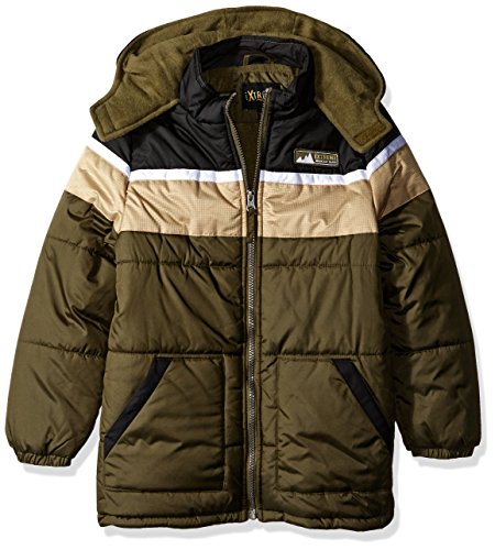 iXtreme Big Boys' Cut and Sew Colorblock Puffer, Olive, 18