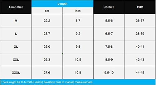 Specifications Material: Spandex Size: US Size - 5.5 D(M) US(US 5.5-6)---EURO Size-37(36-37)-----Label size-M-----Length: 22.2cm(8.7 inch) US Size - 6.5 D(M) US(US 6.5-7)---EURO Size-39(38-39)-----Label size-L-----Length: 23.7cm( 9.2 inch) US Size - 7.5 D(M) US(US 7.5-8)-----EURO Size-40.5(40-41)---Label size-XL----Length: 25.0cm(9.8 inch) US Size - 8.5 D(M) US(US 8.5-9)-----EURO Size-42(42-43)-----Label size-2XL---Length: 26.3cm(10.5 inch) US Size - 9.5 D(M) US(US 9.5-10)----EURO Size-43.5(44-45)---Label size-3XL---Length: 27.6cm(10.8 inch) Notice: The measurement may have 1-3cm (0.39-1.18inches) inaccurate errors. There might be slight colour deviation due to different displays.