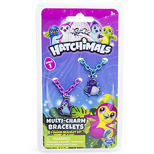 -. Binding : Toy -. Brand : Hatchimals -. EAN : 8152210255878 -. Feature : Set of 2 metal charm bracelets featuring the Hatchimals you know and love / You wear one and your friend wears the other! Or, get 'em both for yourself! / Feturing Series 1 graphics / Metal charm and link bracelet / Child size, clasp attachment -. IsAdultProduct : 0 -. Label : Spin Master -. Manufacturer : Spin Master -. ProductGroup : Toy -. ProductTypeName : TOYS_AND_GAMES -. Publisher : Spin Master -. Studio : Spin Master -. Title : Hatchimals Childs Multi-Charm Bracelets Set of 2 Girls Charm Metal Bracelet Set