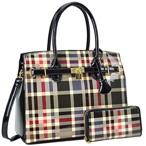 Product Description This Patent plaid design, medium-sized Satchel, with padlock deco, now comes with a matching wallet, is perfect for both workdays and weekends. Top zipper closure, roomy interior compartment, multi zipped pockets, enough space to carry all your daily belongings on the go. A classic look that will never go out of style. Carry this and it really looks great with so many different outfits! It will be a fantastic addition to any collection in your wardrobe. 0