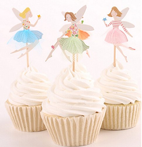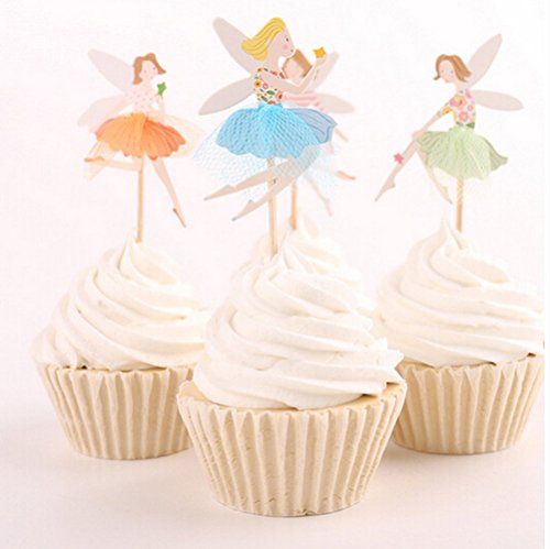 Yunko 24pcs Fairy Girl Wing Party Fun Cup Cake Decorative Toppers Cupcake Decorating Tools for Party