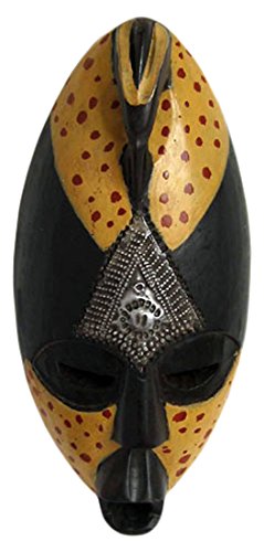 NOVICA Decorative Ghanaian Sese Wood and Brass Mask, Yellow and Black 'Harvest Dance'