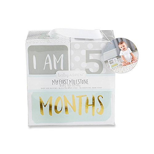 Baby Aspen My First Milestone Age Blocks, White/Grey/Mint/Gold