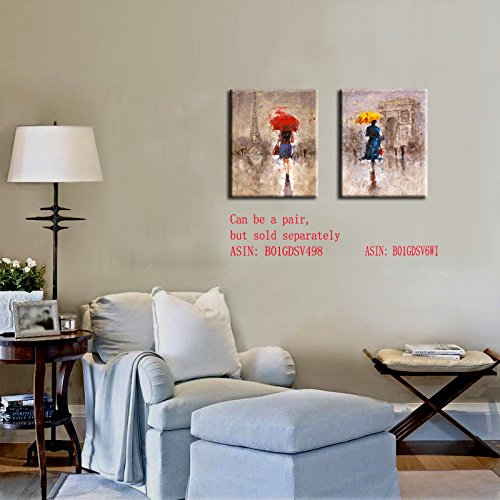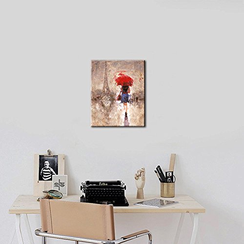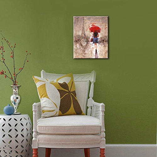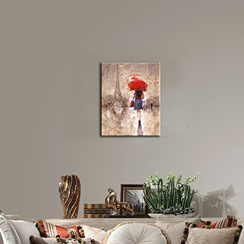 -. Title : Canvas P.R.Ints "Red Umbrella Walking on Paris" Canvas Wall Painting Modern Landscape Oil Paintings Wall Art for Office & Home Decoration -P1L009