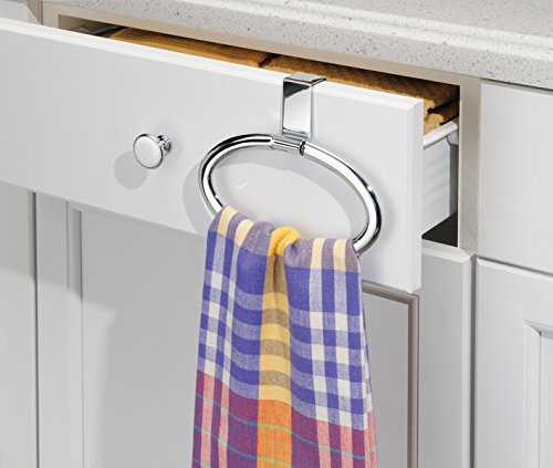 mDesign Over the Cabinet, Kitchen Dish Towel Holder Ring - Chrome