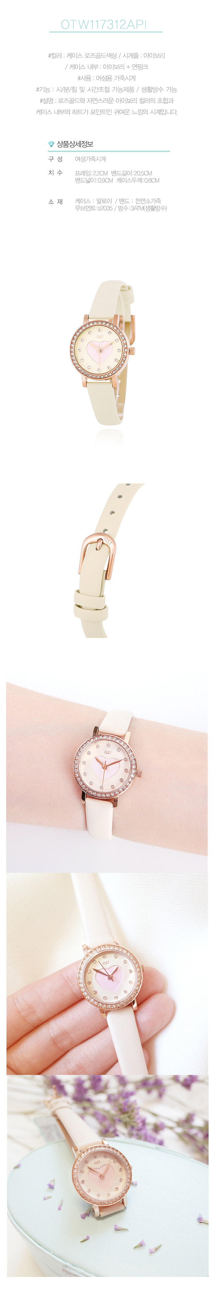 가운데가 하트 모양으로 파여 있어 사랑스러운 가죽시계입니다.