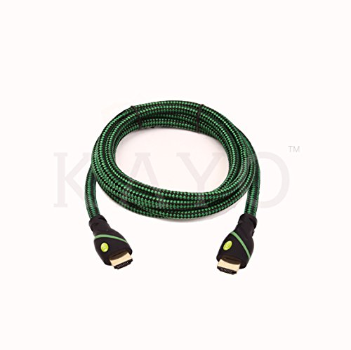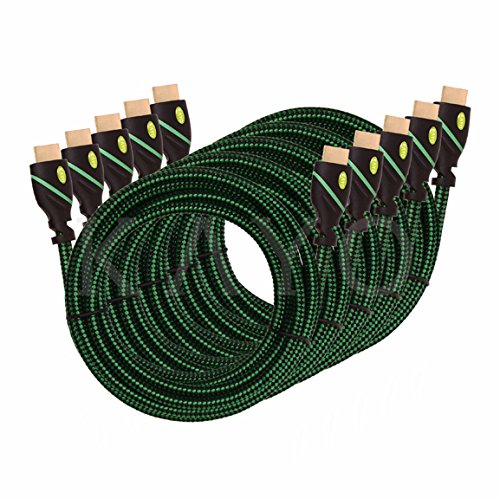 KAYO High Speed HDMI Cable 10 Feet-PACK of 5 Cables -HDMI 2.0 with Ethernet, Supports 3D & Audio Return Channel, Gold Plated Connectors, FULL HD (Latest VERSION)- 10 Feet-PACK of 5 Cables with GREEN & BLACK Braiding/Sleeve.