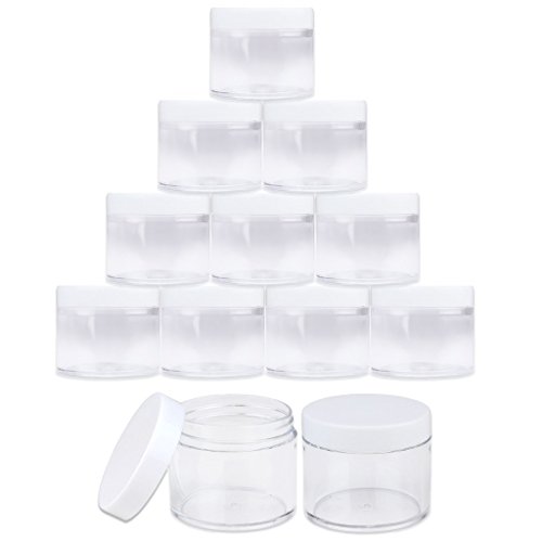 Beauticom 2 oz./ 60 Grams/ 60 ML (Quantity: 12 Packs) Thick Wall Round Clear Plastic LEAK-PROOF Jars Container with WHITE Lids for Cosmetic, Lip Balm, Lip Gloss, Creams, Lotions, Liquid
