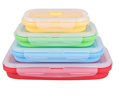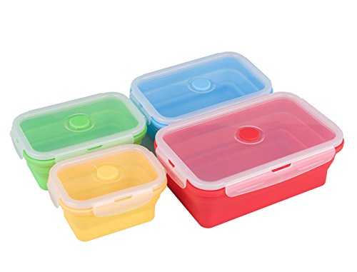 Package including 4 collapsible containers: A yellow one (350ml) , a green one (500ml) , a blue one (800ml) and a red one (1200ml)