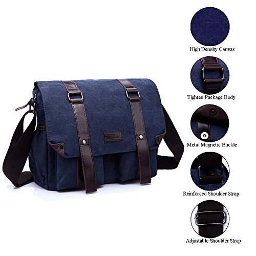-. Title : Canvas Shoulder Bag Cross body Messenger Bag Outdoor Daypack Fits 15’’ Laptop