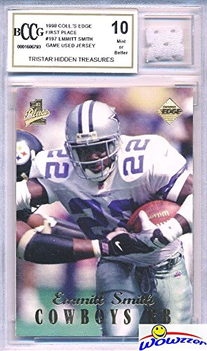 Vintage 1990’s Emmitt Smith Hidden Treasures with a Piece of Authentic Emmitt Smith GAME USED Jersey Graded BGS Beckett 10 Mint GGUM Card! Awesome HIGH Grade Vintage Emmitt Game Used Card! Wowzzer!