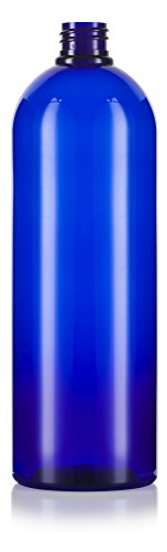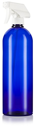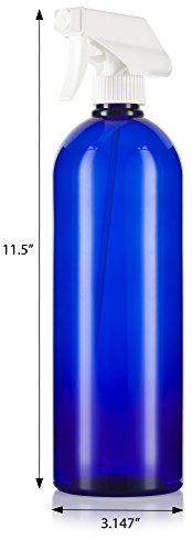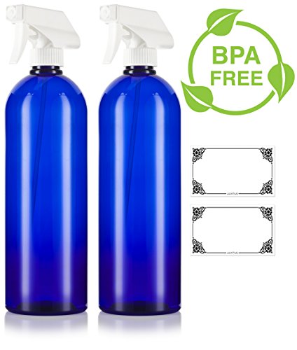 Cobalt Blue 32 oz Large Boston Round PET Bottles (BPA Free) with White Heavy Duty Industrial Trigger Sprayer (2 pack) + Labels