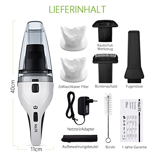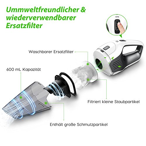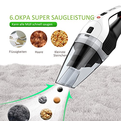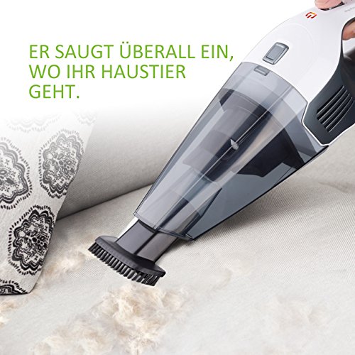 【Leicht & Ergonomischer Griff & Kabellose Handhabung】Mit Gewicht von 1.7kg brauchen Sie nicht mehr fur die Kleinigkeiten Ihren grossen Staubsauger aus Schrank zu holen. Der ergonomische Griff sorgt unbegrenzt eine bequeme Handhabung und Halt. Ohne Kabel ist die Haushalt-Hilfe besonders flexible zur Autopflege oder im Wohnmobil.