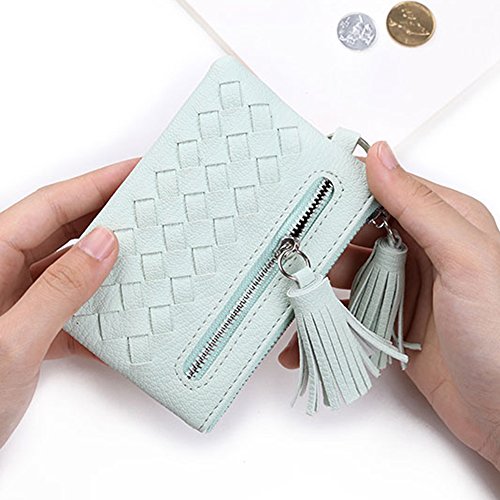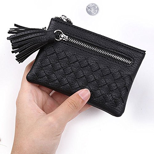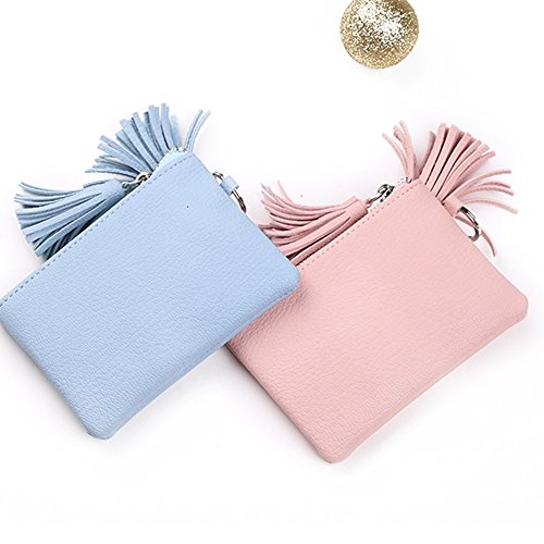 -. Feature : Material: PU leather,decorate with 2 lovely tassel / Functions: Female Short Wallet coin purse / Size: 4.7" x 0.2" x 3.1" (WxHxD), 0.2(lb). Can put money and card inside wallet / Interior: 1 Main Zipper pocket, 1 Side pocket / This wallet is a good present for girls,portable in hand,usa as a change coin purse and card holder,Simple and compact design,lovely appearance.