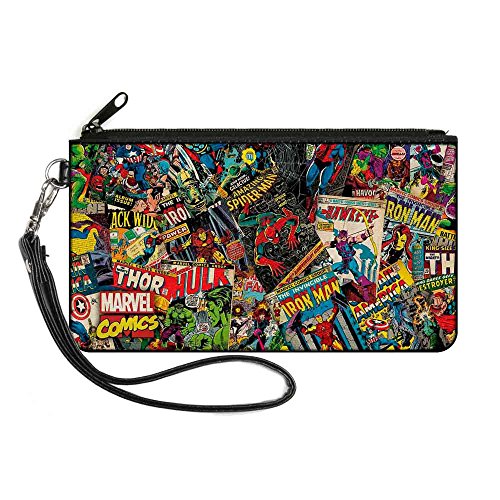 -. Title : Retro Marvel Comic Books Stacked2 Canvas Zipper Wallet
