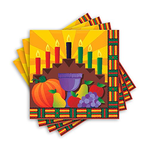 Festive Kwanzaa Celebration Beverage Napkins Tableware, Multi Colored, Paper, 5" x 5", 16-Piece