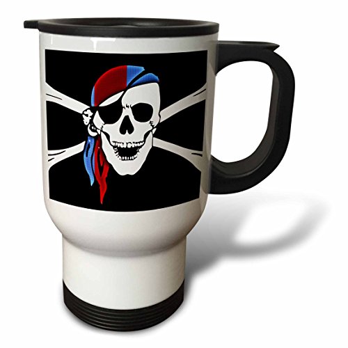 3dRose Pirate Skull and Cross Bones Art Black Flag with Bandana, Stainless Steel Travel Mug, 14-Oz