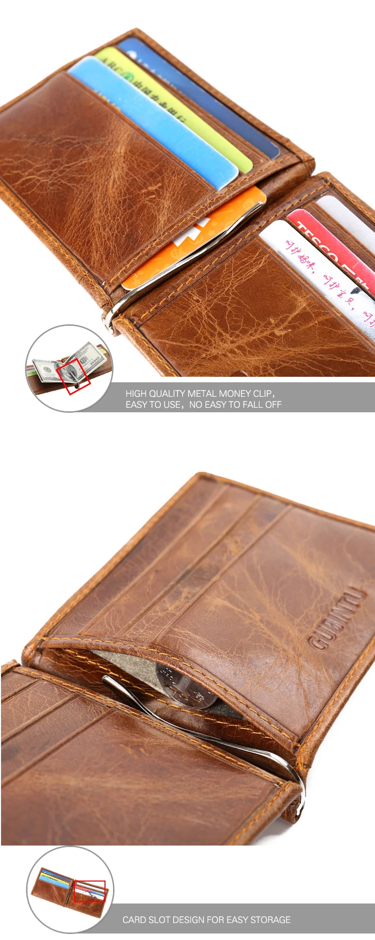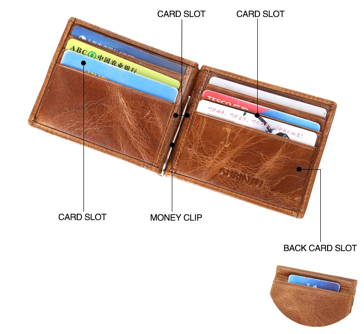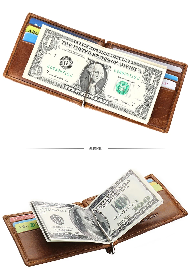 Material for money clip wallet:Genuine Leather