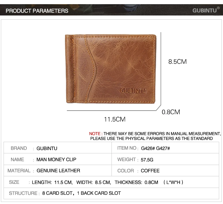 Feature:Genuine Leather Money Clip