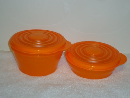 -. Brand : Tupperware -. Color : Orange -. EAN : 0021140297150 -. Feature : Includes 1 cup and 2 cup containers / flex lids - expand for just that extra bit of room / orange with air-tight, water tight seals / Modular design permits containers to stack, thus saving storage space / 5" diameter -. Label : Tupperware -. Manufacturer : Tupperware -. ProductGroup : Kitchen -. ProductTypeName : KITCHEN -. Publisher : Tupperware -. Studio : Tupperware -. Title : Tupperware Mini Stuffables Storage Bowl Set in Orange (1 Cup, 2 Cup Containers) -. UPC : 021140297150