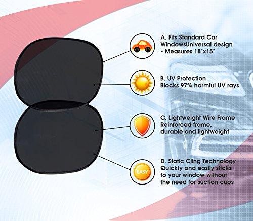 • REDUCES HEAT - Reduces the heat inside of the car. Great car seat sun shade as well as for older children in the back seat. Ideal rear window car shade.
