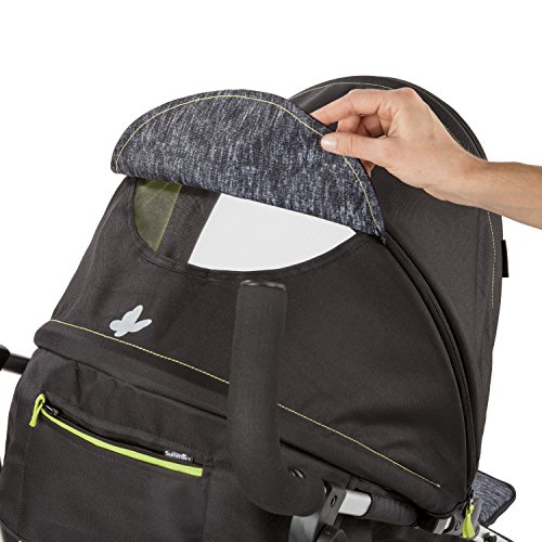 • Oversized, 1 hand adjustable canopy with zip out extension that blocks 99.9% of UVA and UVB rays