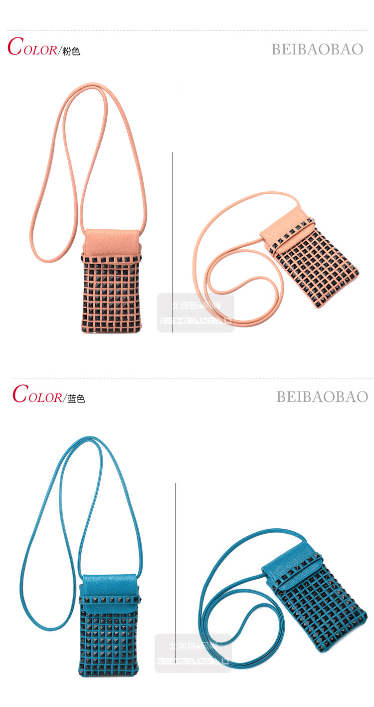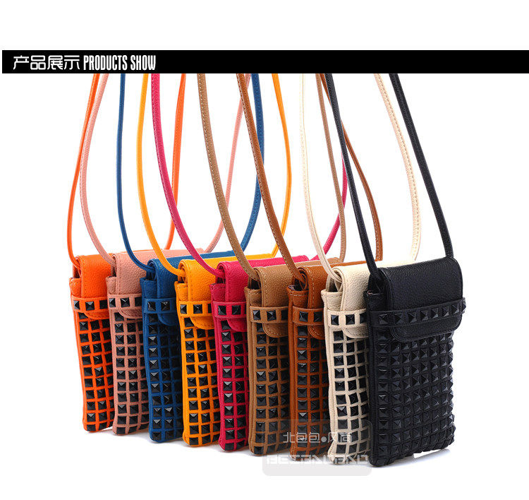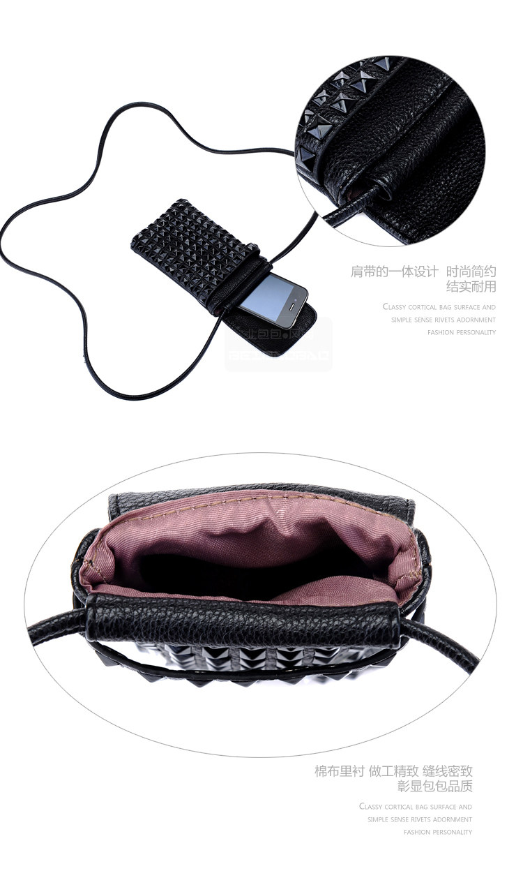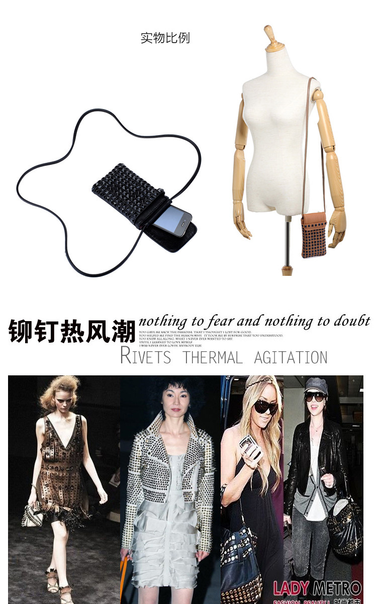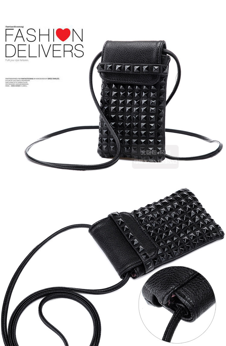 时尚铆钉手机袋。内部结构:无