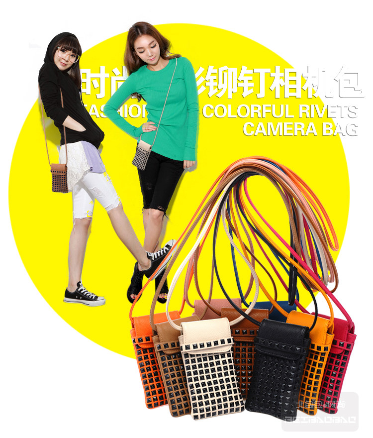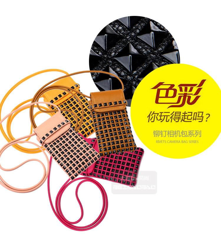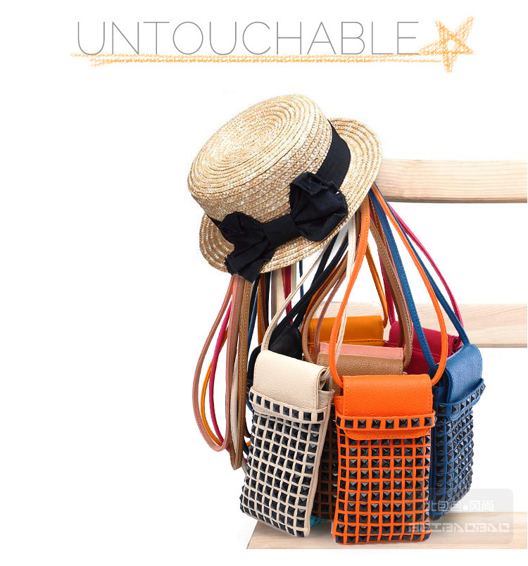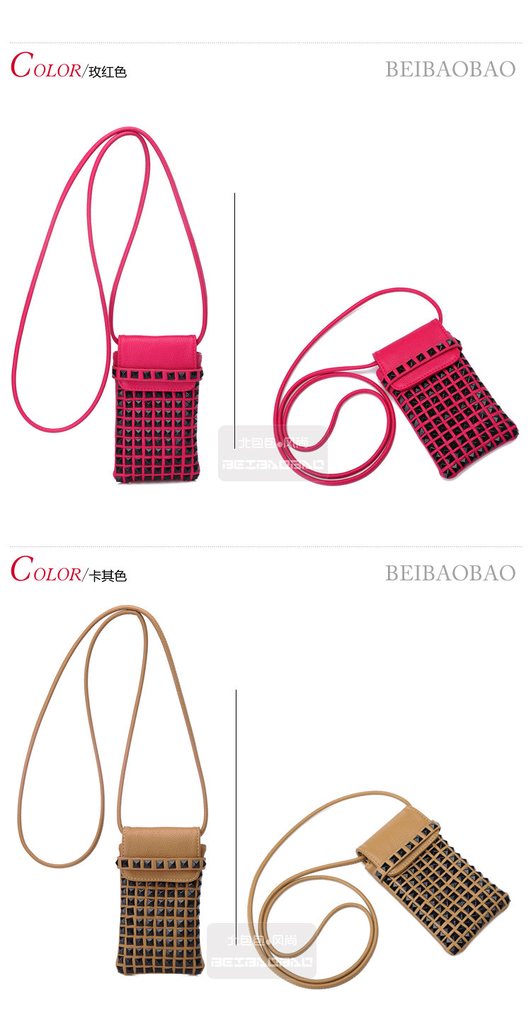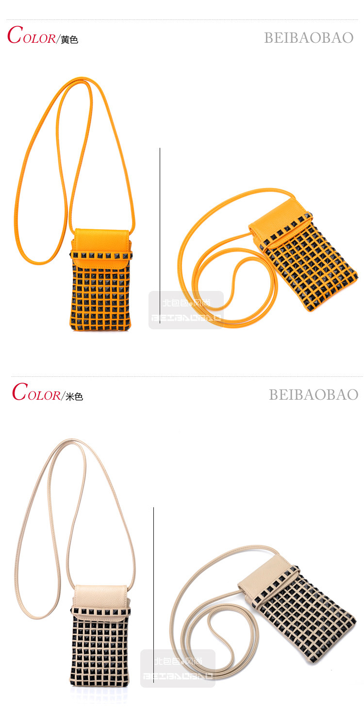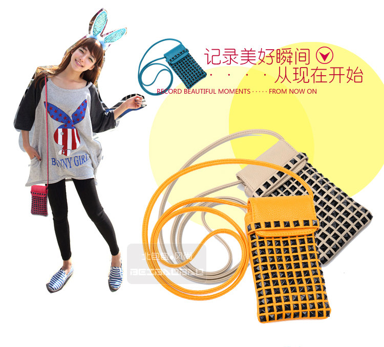 时尚铆钉手机袋。内部结构:无