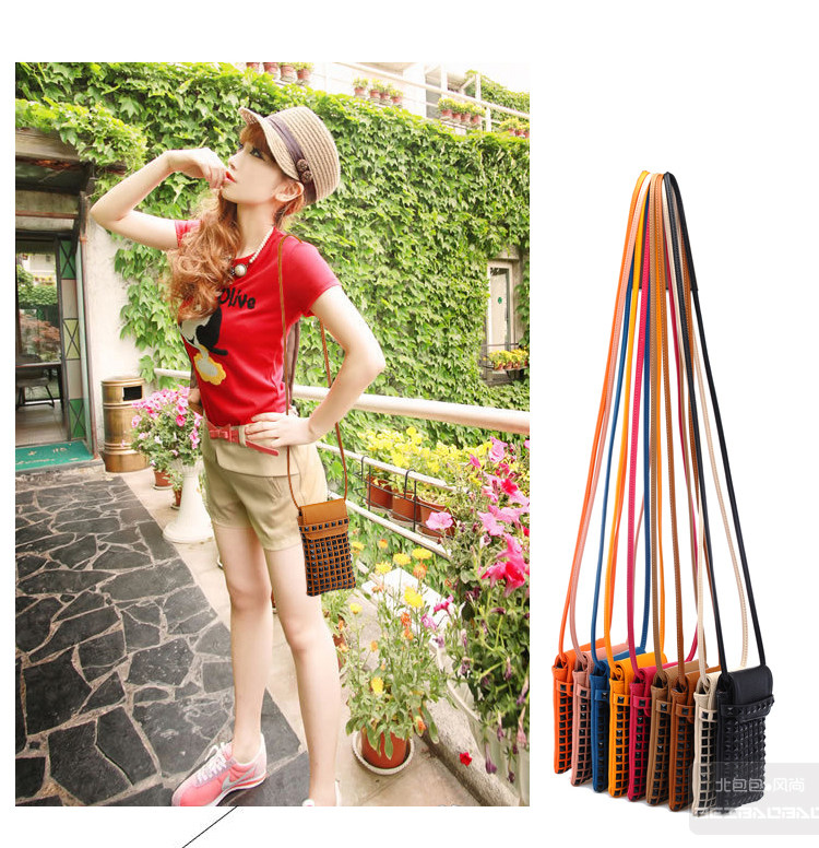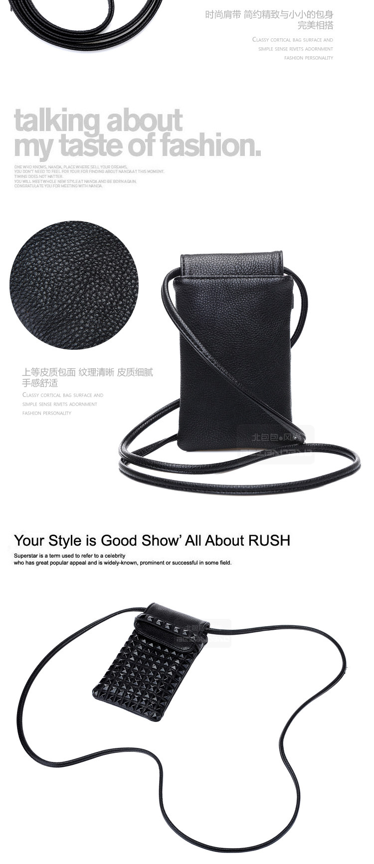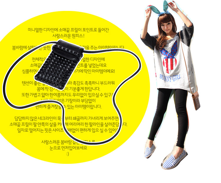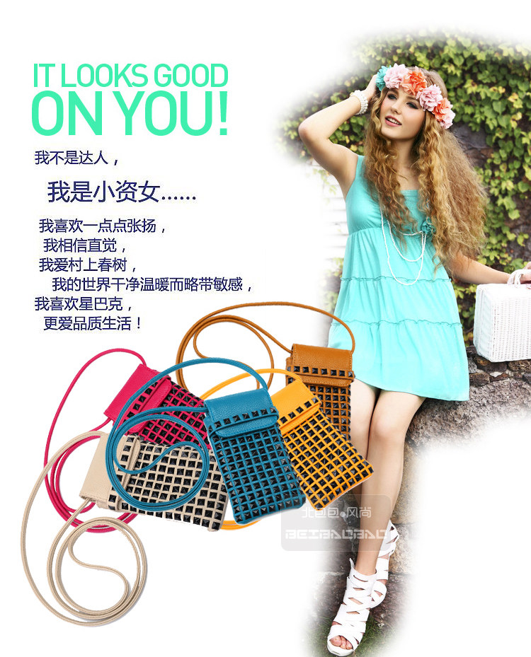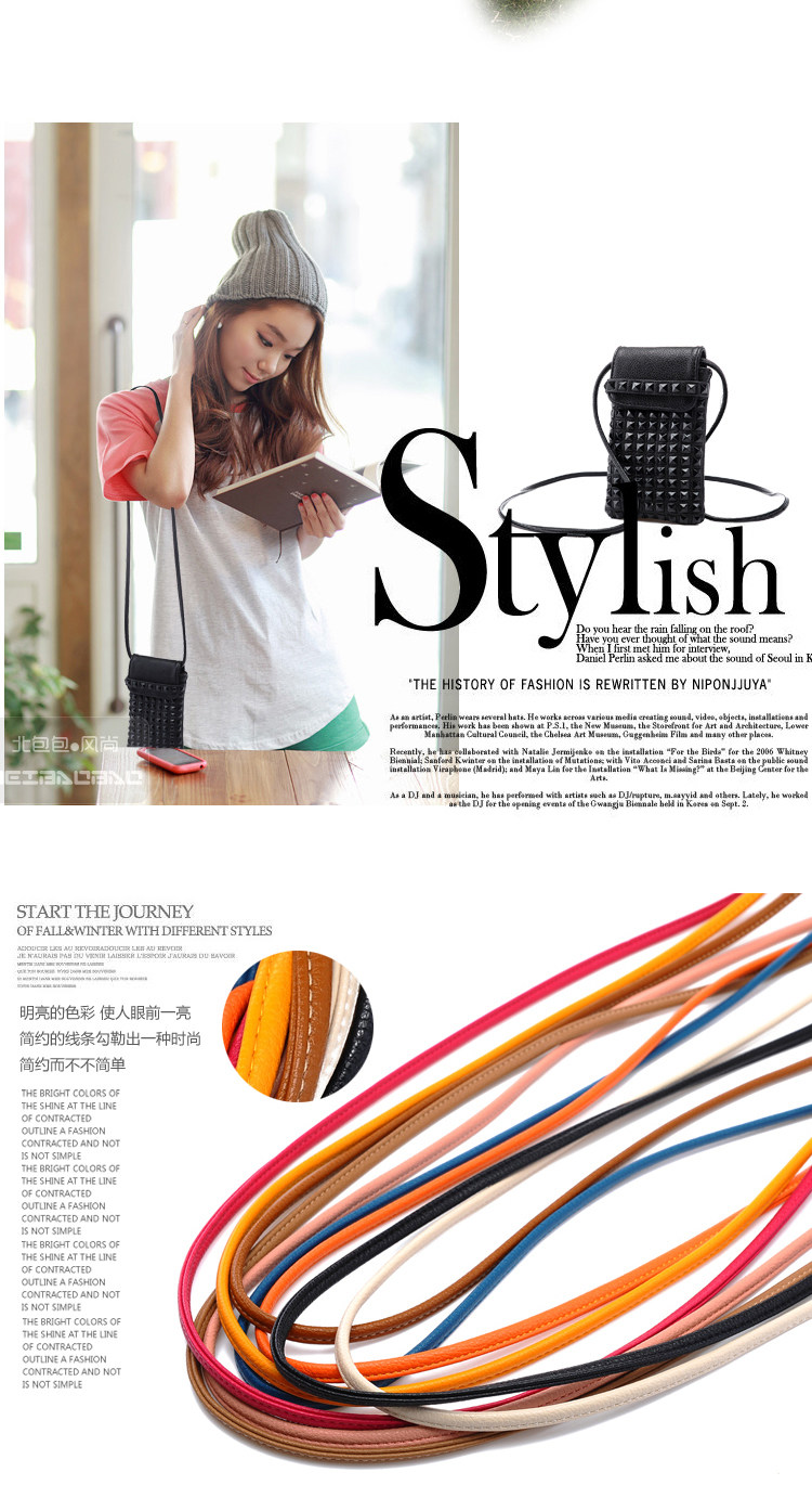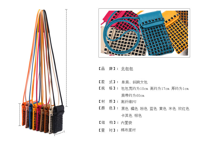 时尚铆钉手机袋。内部结构:无