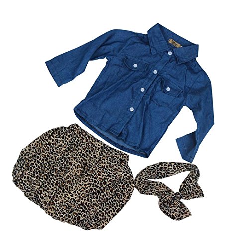 -. Title : Muxika 3Pcs Baby Kids Girls Denim Shirt +Leopard Skirt + Headband Clothes Set
