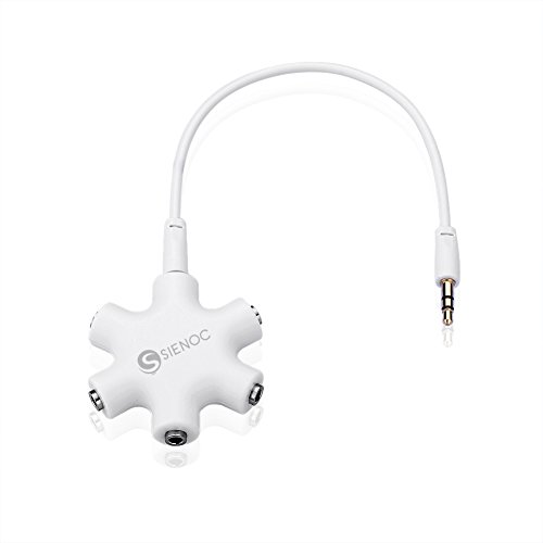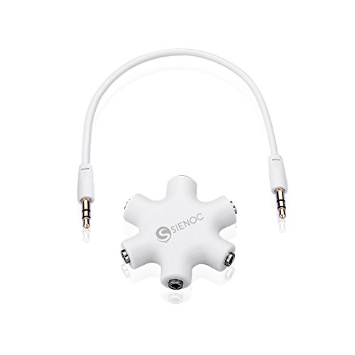 SIENOC 6-Way 3.5mm Stereo Audio Headset Hub Splitter Up to 5 Headphones to iPod MP3 Player Music Sharing Device with Stereo Cable White