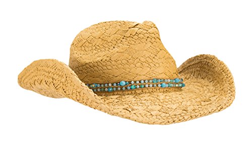 Unique Hand Woven Straw Cowgirl Hat, Shapeable Cowboy Hat, Beaded Hatband with Tie