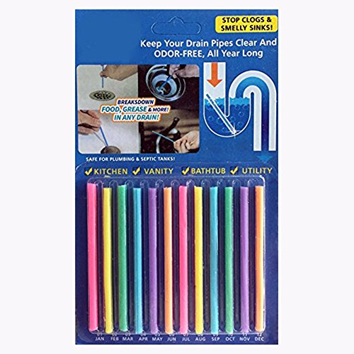 -. Feature : Breaks down grease, fat and food which cause blockages and bad smells. / Uses powerful natural bacteria and enzymes / Keeps your drains free flowing and clean smelling / Each pack of drain sticks contains 12 sticks, enough to help prevent blockages and bad smells for 1 year / Eco-friendly