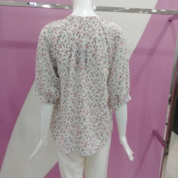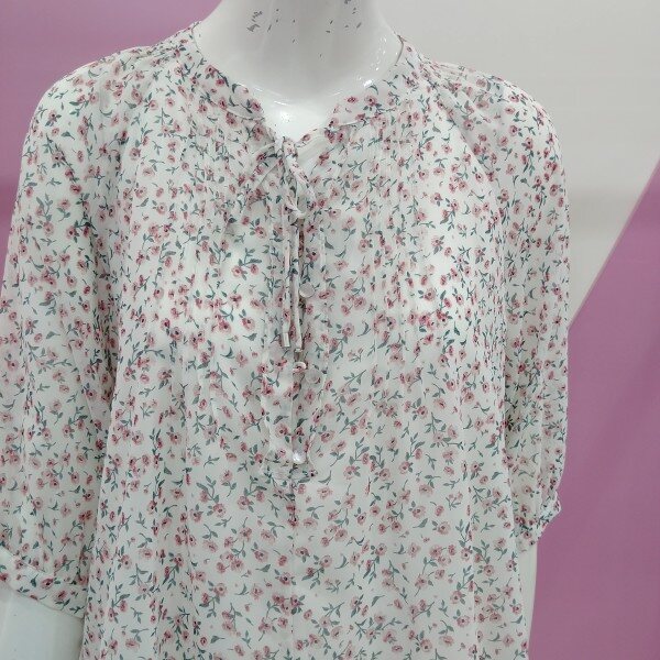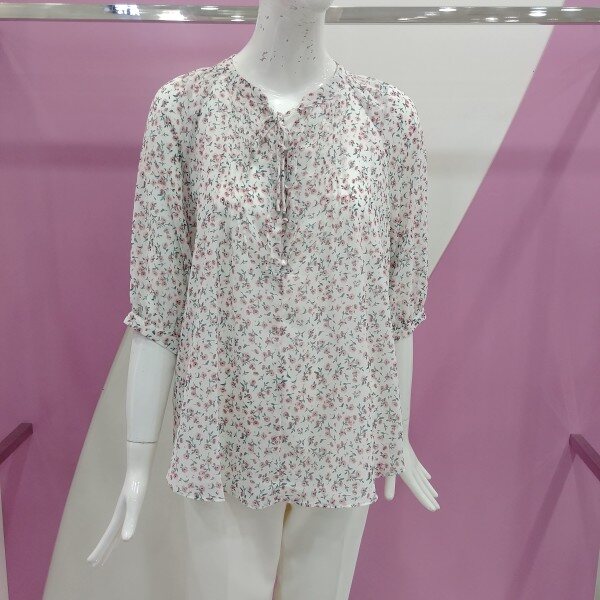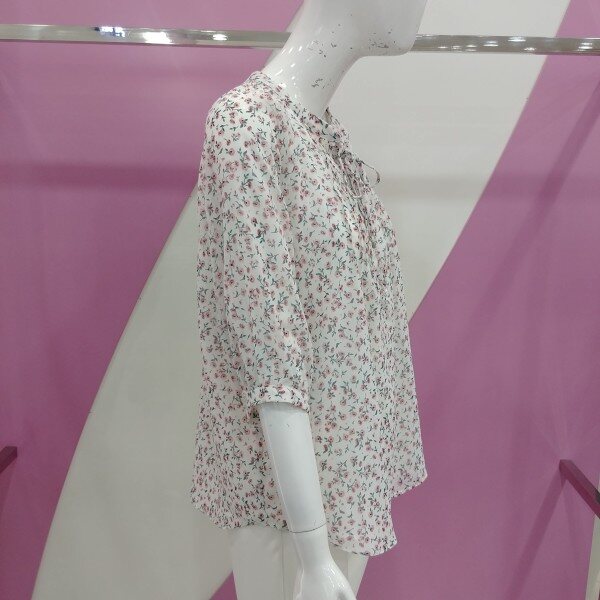 러블리하게 표현한 플라워 블라우스.넥부분에 끈이 있어 더욱더 멋스럽게 표현되는 블라우스.정사이즈 구매.