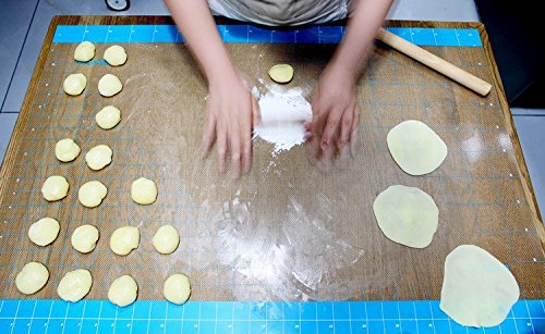 - DURABLE & RESISTANT: BakeitFun silicone pastry mat resists temperatures from -40°F (-40°C) to 450°F (230°C), so you can take the mat out of the freezer, straight to the microwave or oven; Flexible, nonstick silicone offers instant, easy release without the use of grease. It has a reinforced FIBER CLOTH covered by PREMIUM FOOD GRADE SILICONE making it stronger and ticker than other pastry mats