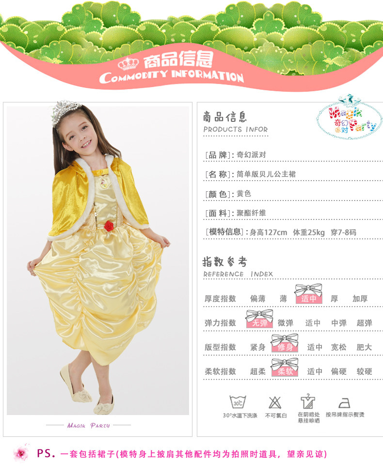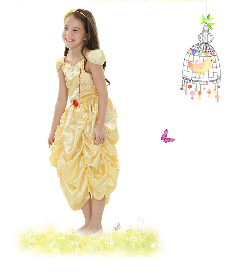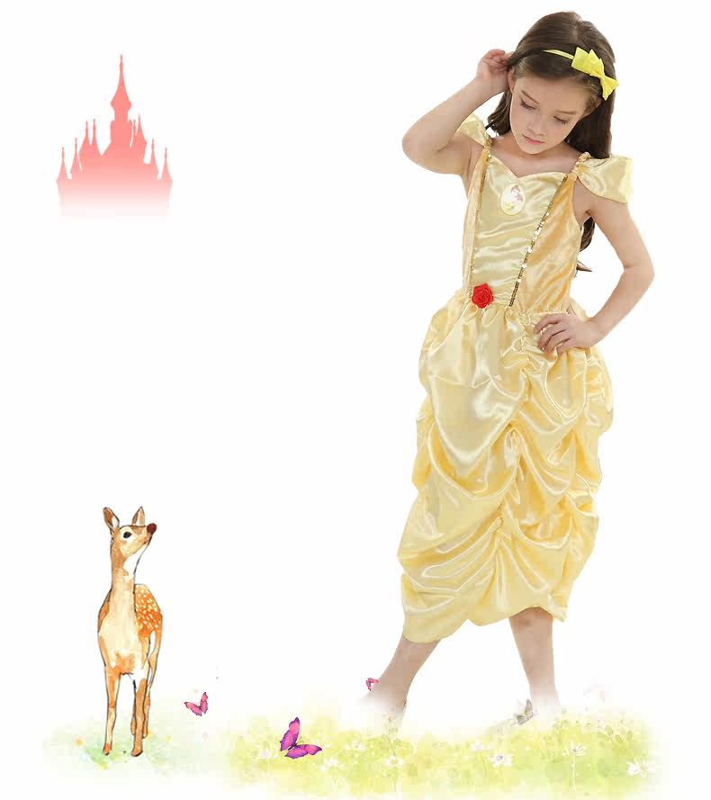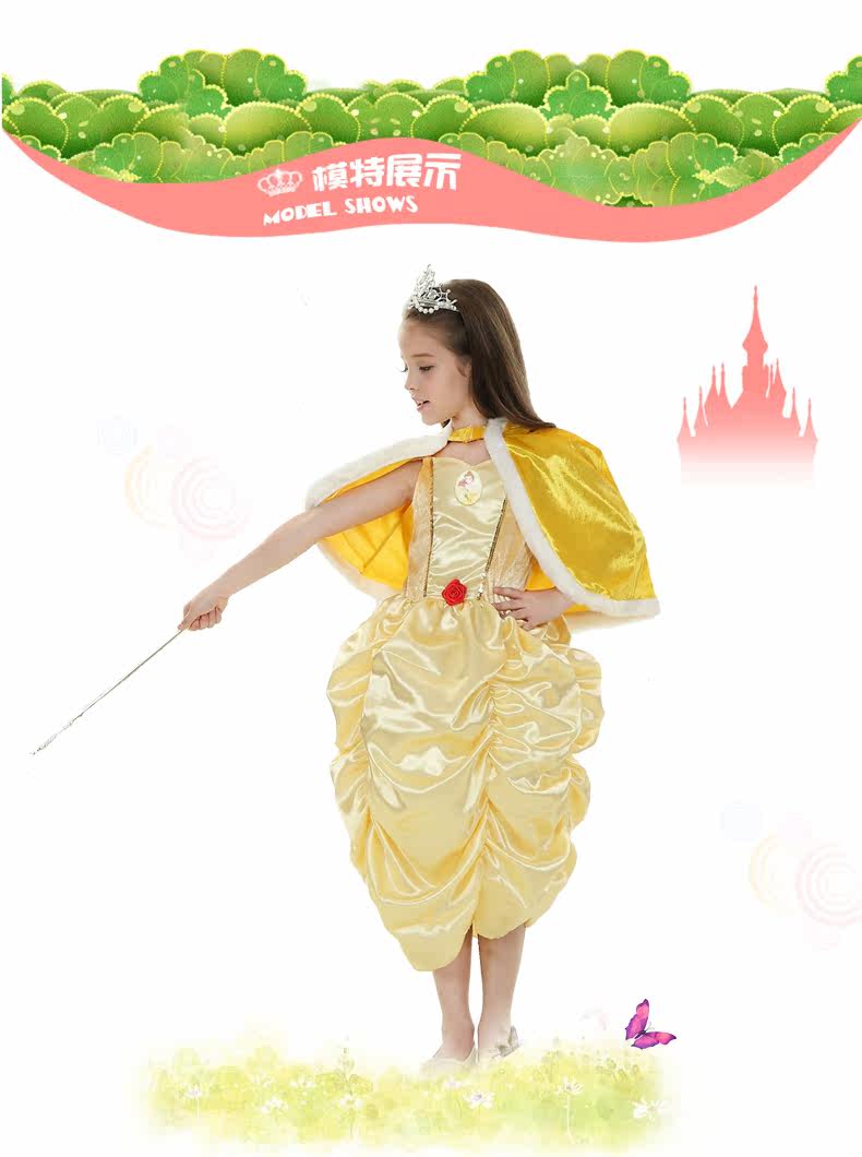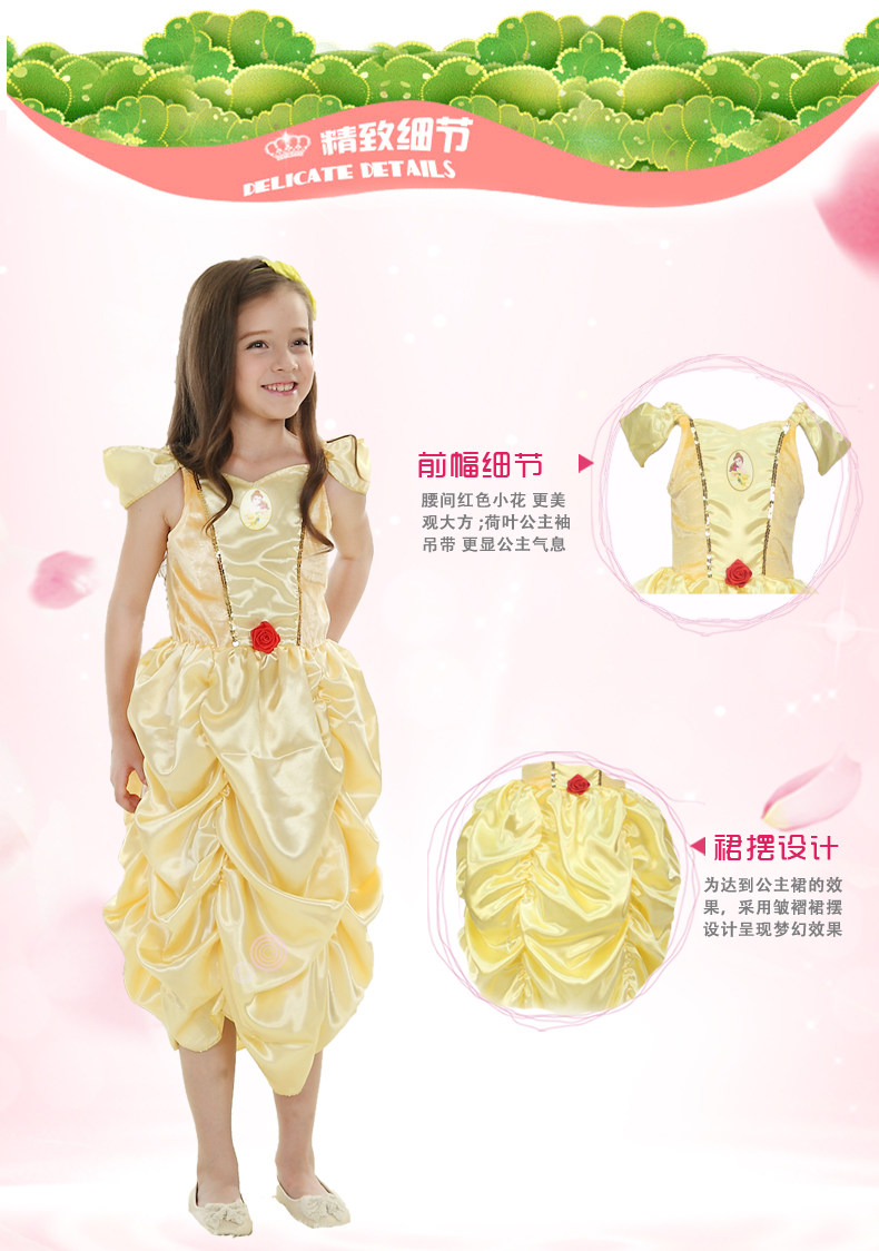 万圣节Cosplay儿童化妆舞会演出连衣裙女童黄金贝儿公主裙晚礼服