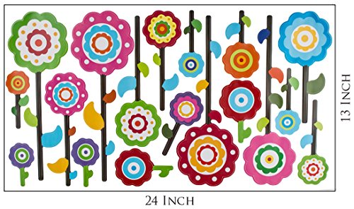 -. Feature : ✿ Pre-Cut Flower Wall Decal Pack for Baby Nursery Decor / ✿ Total of 18 Flowers. Height of Highest Flower : 11.7 Inches / ✿ Multi-color Kids Wall Sticker for Baby room, Playroom / ✿ Flower Stickers for Girl Nursery. Ideal Home Decor Gift. / ✿ Just Peel & Stick!