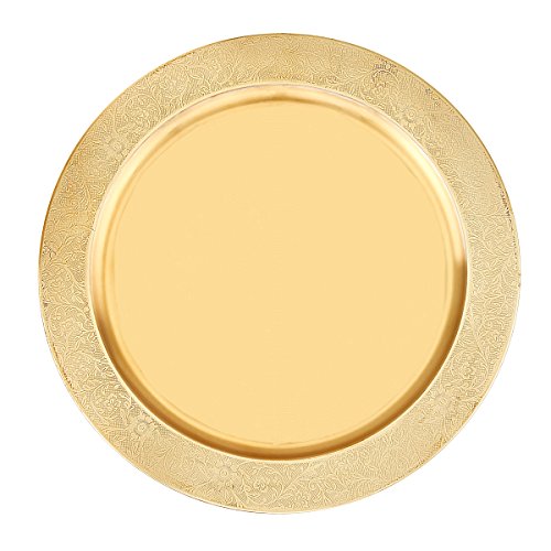 Studio : Old Dutch Publisher : Old Dutch Binding : Kitchen Product Description This etched charger plate is perfect for displaying your favorite dishes on any special occasion. Elegant and sophisticated, this tray will instantly let your guests know that you have great taste and will only be served the best by you. Your style of decor will leave a lasting impression. Beautiful etched rim, and Champagne colored finish over durable stainless steel. 13" diameter. 0