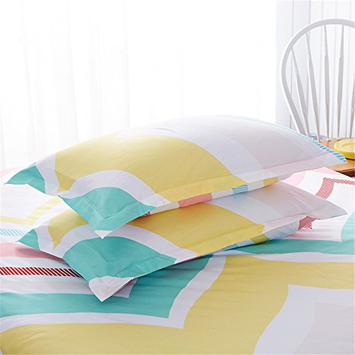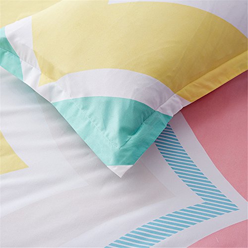 100% Premium Microfiber This Geometric Duvet Cover Set is made of 100% premium microfiber.Microfiber is a high-density polyester with extremely fine fibers that make it lightweight yet durable.These fibers give a soft,pleasant feel against the skin while remaining breathable and cool, while its intense density makes its completely resistant to wrinkling and fading,which always gives you a sweet sleep and accompanies you through four seasons.
