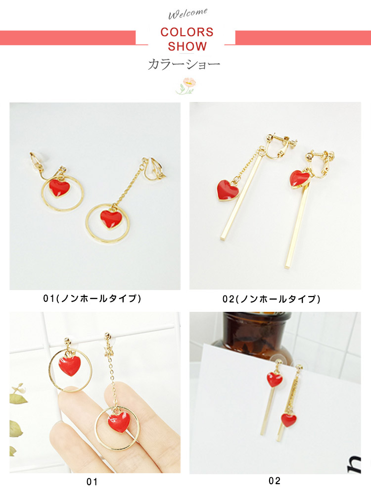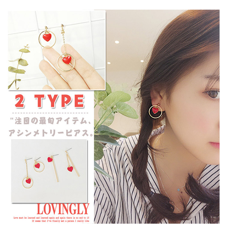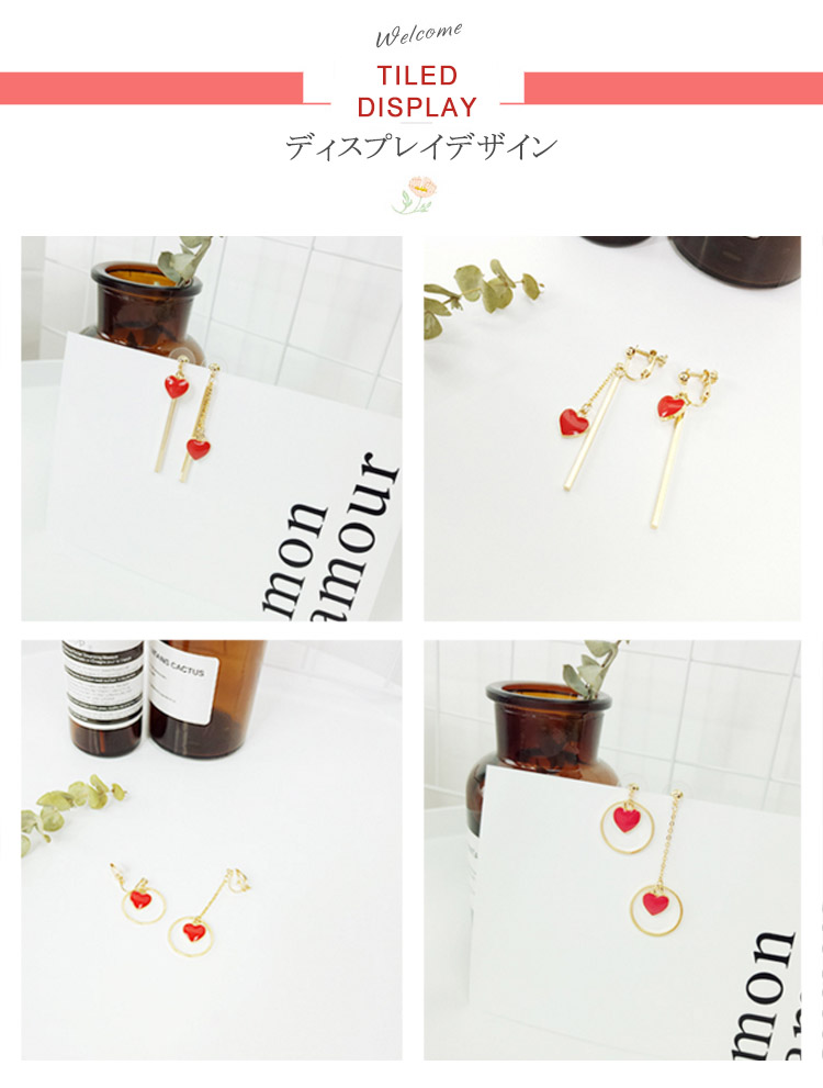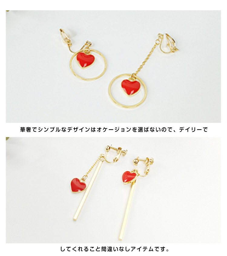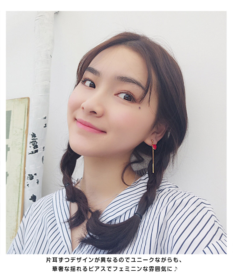 | 注目の最旬アイテム、アシンメトリーピアス。ハート型のモチーフが印象的!片耳ずつデザインが異なるのでユニークながらも、華奢な揺れるピアスでフェミニンな雰囲気に♪ | |