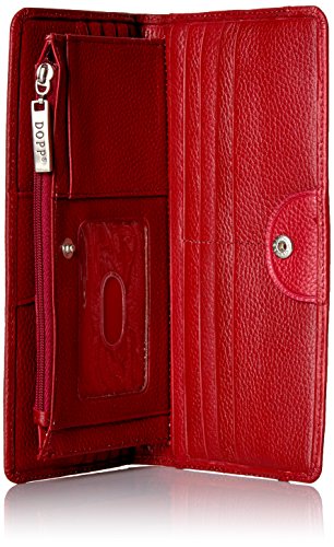 Naturally milled cowhide with genuine leather interior roma double sided wallet features dopp® signature zipper pulls, double sided snap closure with zip pocket, exterior slip pocket, 2 interior slip pockets, 16 credit card slots, 2 i.D. Windows and 2 utility slip pockets.