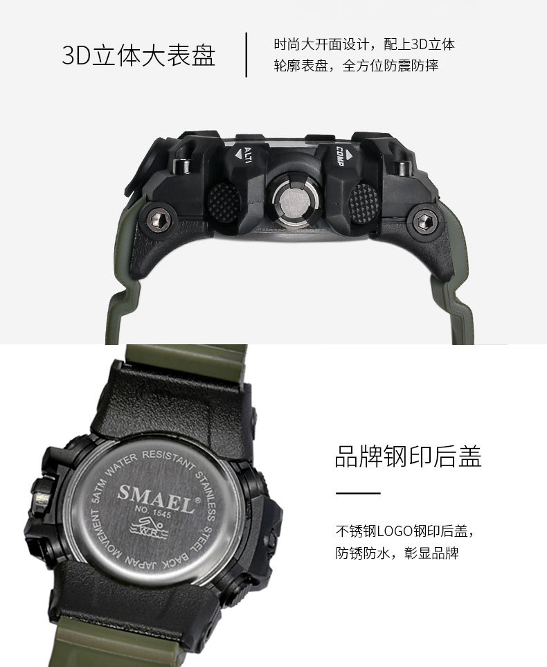 Special features: 24 hour indication, alarm, weekday display, chronograph, luminous, decoration, month display